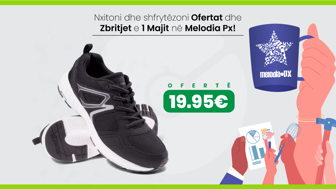 Je tu mendu çfarë atletesh me ble për 1 Maj amo spo ki ide? Kemi ne.Nëse ju pëlqejnë atletet që janë një kombinim i përsosur i stilit dhe komoditetit, atëherë do t'ju pëlqejnë atletet nga brendi i njohur Martes.Këto atlete janë të dizajnuara me vëmendje ndaj detajeve dhe janë bërë nga materiale të cilësisë së lartë, duke siguruar qëndrueshmëri dhe jetëgjatësi. Dizajni modern i atleteve Martes i bën ato një zgjedhje të gjithanshme për çdo veshje e çdo vend duke ju ofruar rehati gjatë gjithë kohës për këmbët tuaja.Pavarësisht nëse jeni duke ecur, duke eksploruar shtigje të natyrës ose thjesht duke shijuar një shëtitje të qetë, këto atlete ofrojnë tërheqje dhe mbështetje të shkëlqyer.Mos e humbisni mundësinë për t’ua shtuar koleksionit tuaj të këpucëve atletet elegante dhe funksionale Martes Madiun. Porositni tuajat sot dhe përfitoni tani nga zbritja që ju ofron kodi #MAJI nga 37,95 euro në vetëm 19,95 euro.