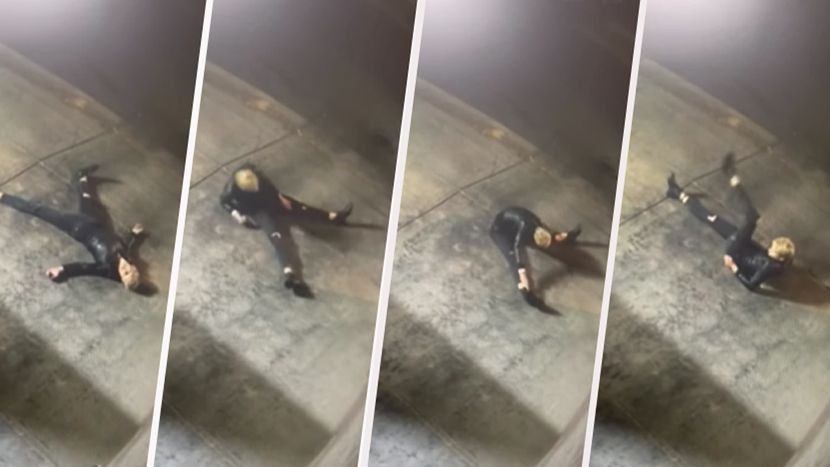 Në video shohim një grua të paidentifikuar duke ngrohur tërësisht muskujt e saj në asfalt.