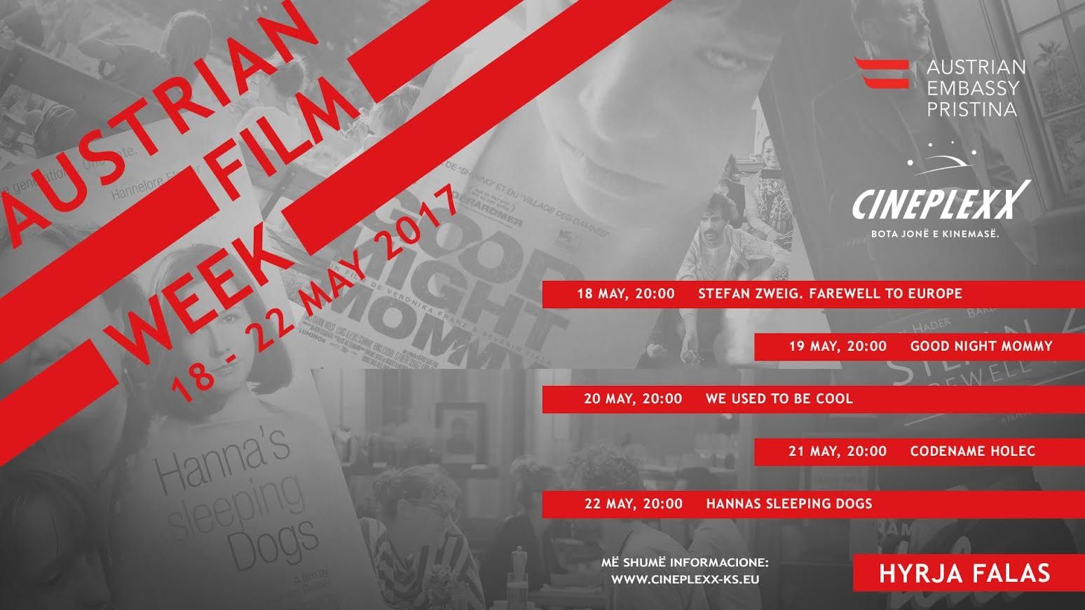 Gjatë kësaj jave, në Cineplexx do të shfaqën 5 filma austriakë për 5 ditë. Eventi do të zgjas nga data 18 maji deri me 22 maj. Të gjithë filmat do të jenë në gjuhën origjinale (austriake), me titra në gjuhën angleze.