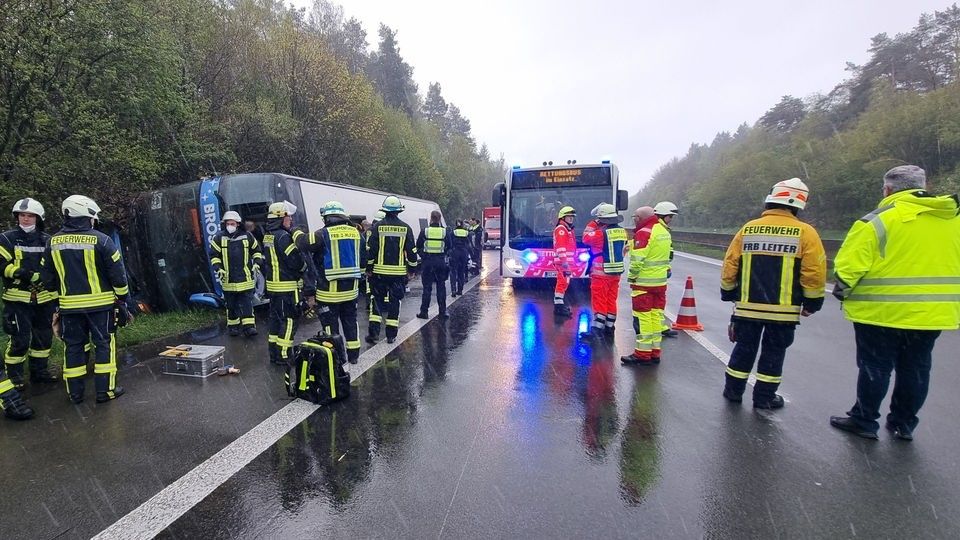 Në një autostradë pranë Wenden midis Freudenberg dhe Olpe të dielën në mëngjes, një autobus që transportonte 67 nxënës doli nga rruga dhe u përmbys.