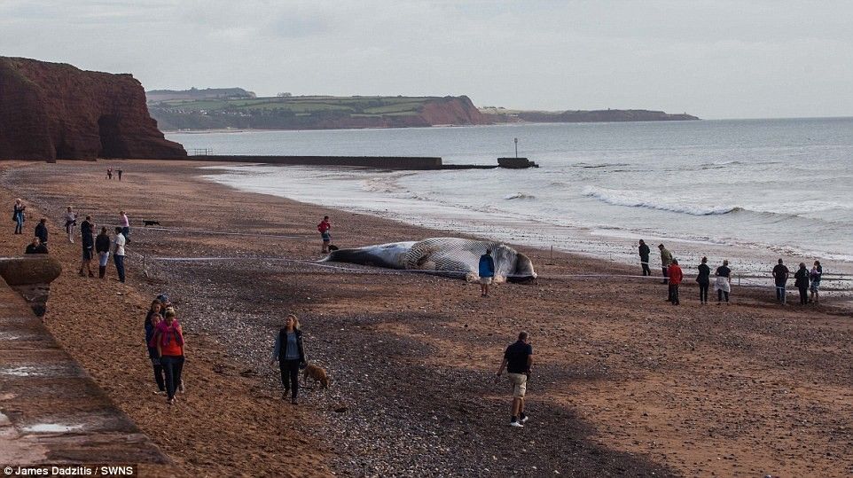 Në plazhin Red Rock që ndodhet në Devon të Anglisë, uji e ka nxjerrë nja balenë të ngordhur e të gjatë afro 16 metra.