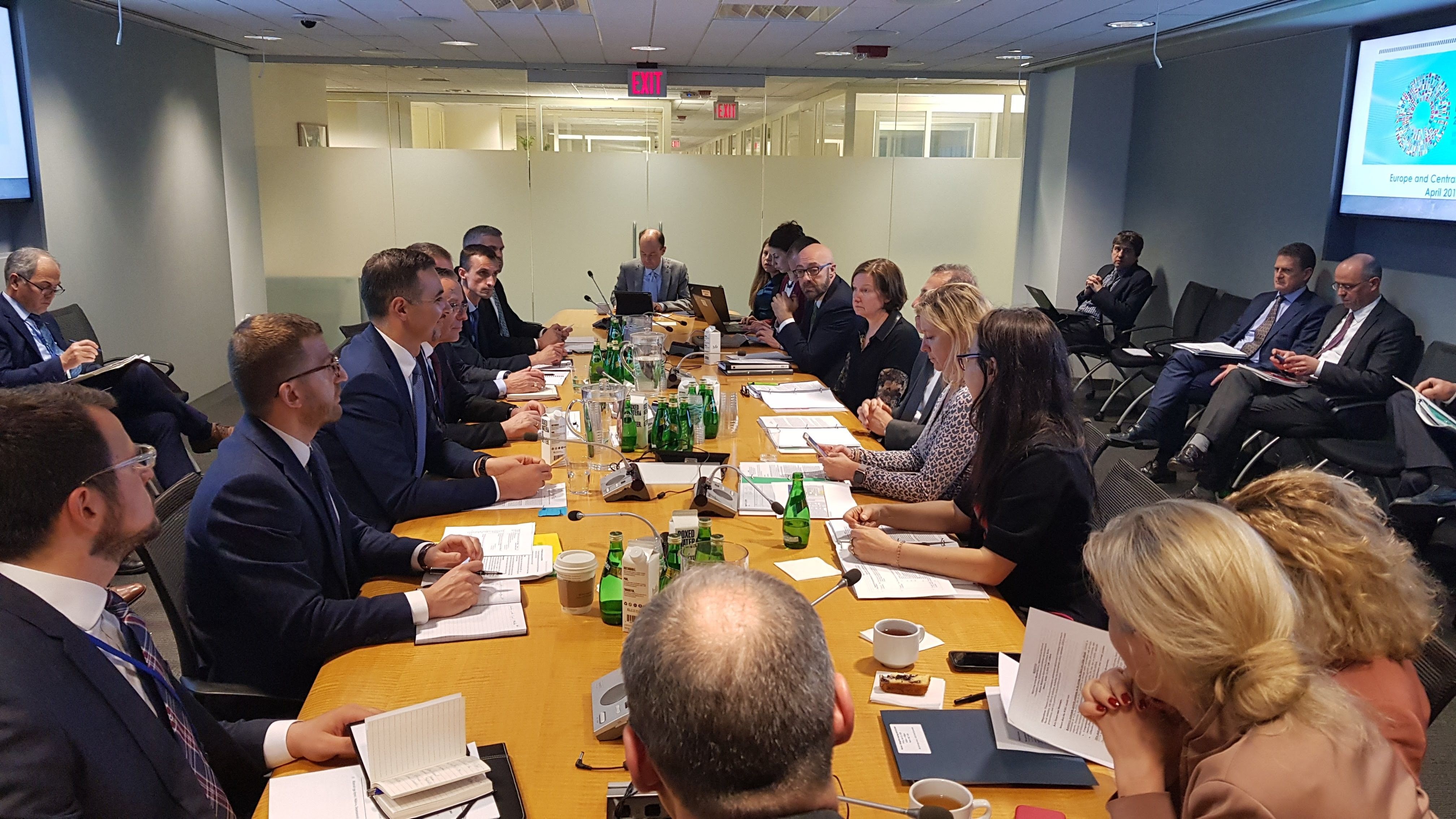 Gjatë takimeve të përvitshme pranverore në Washington të cilat organizohen nga Banka Botërore, ministri i zhvillimit ekonomik, Valdrin Lluka, dhe ai i ministrisë së financave, Bedri Hamza, u takuan me zëvendëspresidentin e Bankës Botërore për Evropë dhe Azi, Cyril Muller.