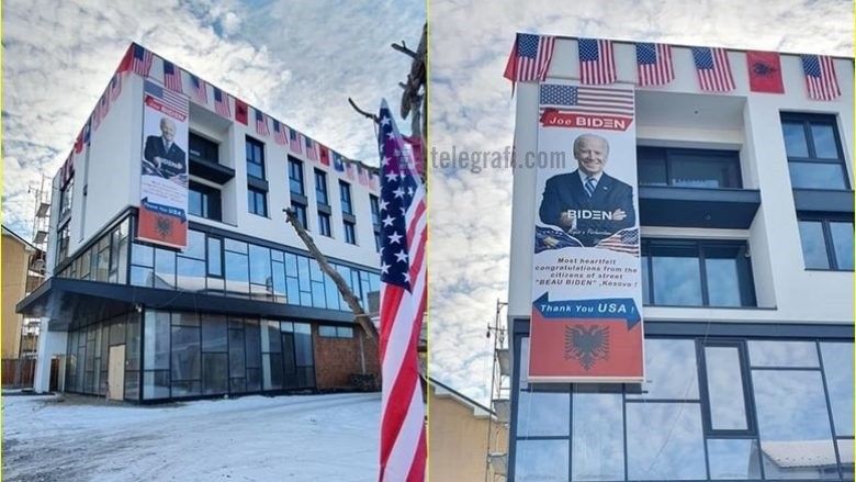 Në disa fotografi të publikuara të ardhura në adresë të Telegrafit, shihet një poster i presidentit në ardhje të SHBA-së, Joe Biden.