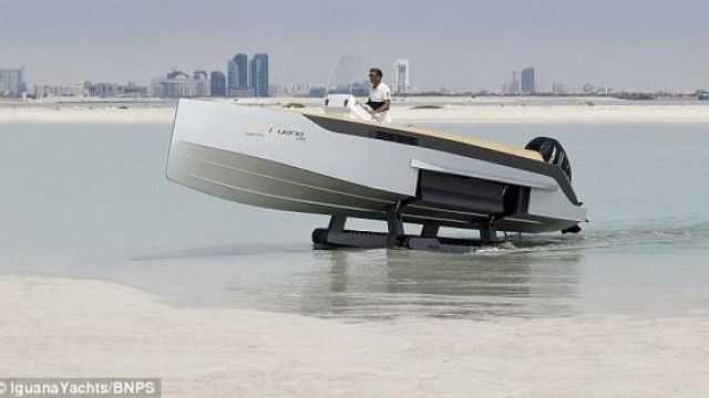Kjo është e mundur me barkën Iguana 29, e cila ka një palë rrotë si të tankut, të cilat lëvizin nëpër tokë, pasi të kenë dalë nga uji.