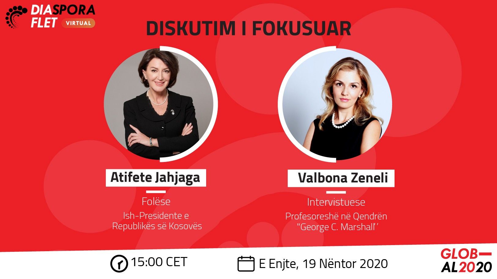 Hapja e konferencës sot do të bëhet me një bisedë të përqendruar nga ish-Presidentja e Kosovës, Atifete Jahjaga me moderatore Valbona Zeneli (Udhëheqëse e Departamentit të Nismave Strategjike në qendrën "George C. Marshall"), e cila do të flasë më shumë për rolin e saj diplomatik dhe mbështetjen e kauzave të rëndësishme shoqërore.