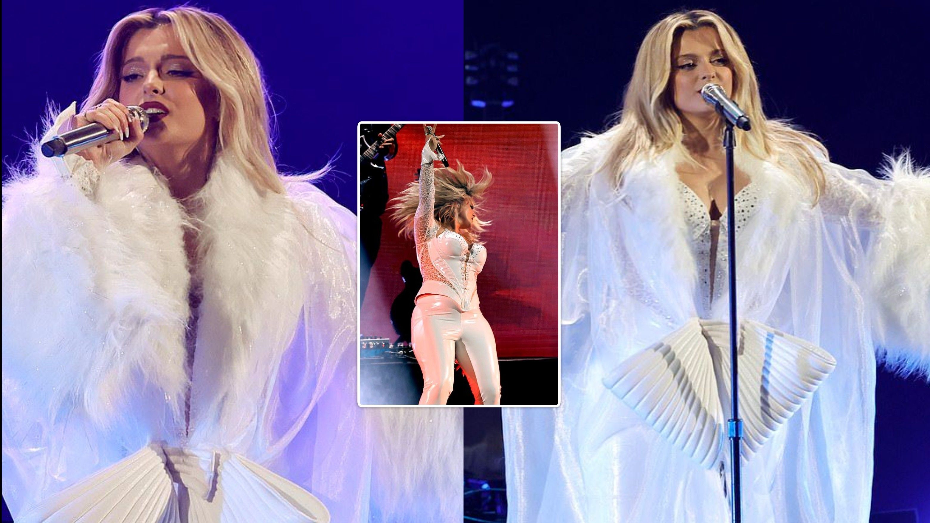 Bebe, e cila u ngjit në tapetin e kuq përpara ngjarjes me një veshje futuristike të kaltër, u ndërrua në një mantel të bardhë me pupla për performancën e saj.