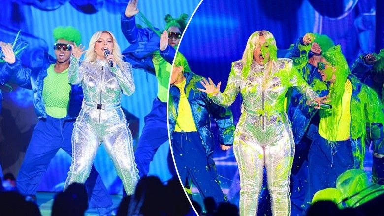 Në fund të performancës, Bebe Rexha u lag me një ngjyrë të gjelbër, e cila ishte menduar si një “befasi e pakëndshme” në fund interpretimit.