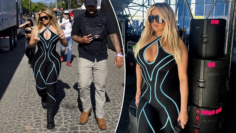 Ajo shfaqej në një kostum të zi të zbukuruar me viza të kaltra, të cilat i shtonin aspektin e saj dinamik dhe të guximshëm, duke treguar se ajo është jo vetëm një ikonë e muzikës, por edhe e modës.