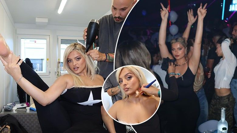 Para ngjitjes në skenë, Bebe ndau momente nga prapaskena, ku ajo përgatitej me glam-squad-in e saj. Në një nga fotot më virale, ajo është duke marrë grim ndërkohë që tregon fleksibilitetin e saj me një pozë energjike, duke ecur drejt performancës me stil dhe karizëm.