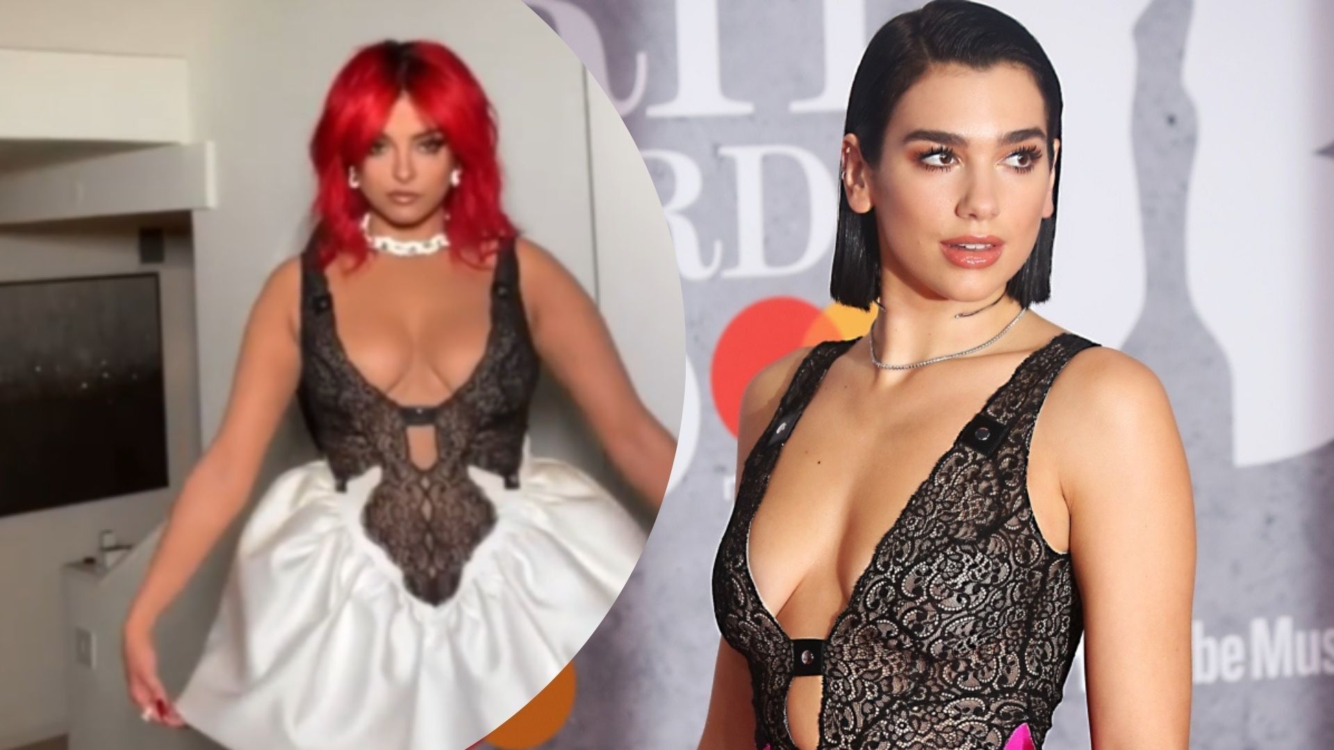 Si duket ajo është inspiruar nga Dua, pasi kjo e fundit kishte pjesën e lartë të fustanit të njëjtë në vitin e kaluar në Brit Awards.