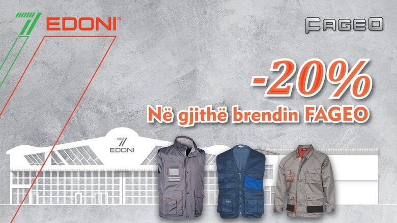 Qendra Edoni - me lokacion në Fushë Kosovë vjen me super aksion këtë javë, duke ofruar deri në 20% zbritje në të gjitha produktet e brendit të veshjes FAGEO.