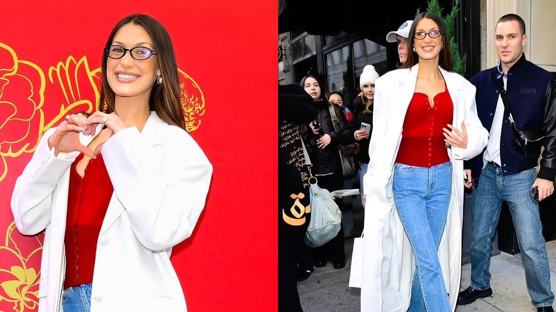 Modelja 28-vjeçare, e njohur për paraqitjen e saj të shkurtë në “Yellowstone”, veshi një pulovër të kuq me kopsa dhe xhinse të drejta, të kombinuara me sandale të kuqe dhe një pallto të bardhë elegante.