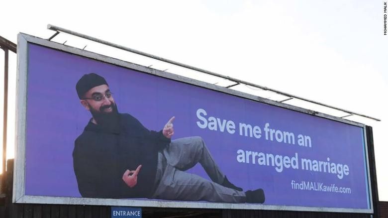 Pankarta përmban fotografinë e tij, një shkrim “më shpëto nga martesa me mësit” dhe gjithashtu emrin e faqes së tij të internetit, kështu që gratë e mundshme mund ta kontaktojnë atë.