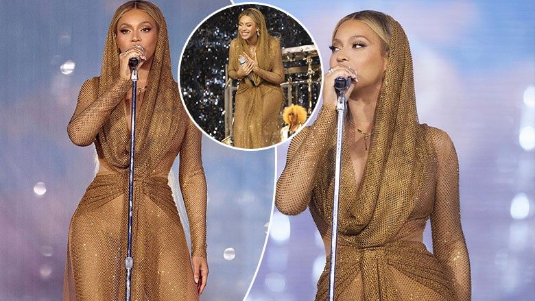 Beyonce performoi me fustan të artë dhe e mbuluar me shami në koncertin e fundit në Detroit