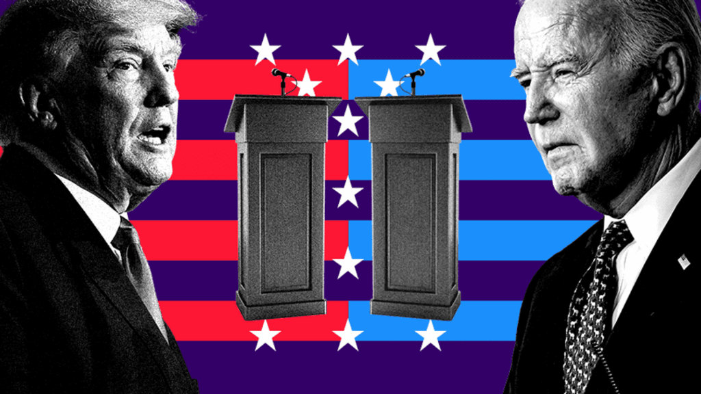 Joe Biden, presidenti demokrat, dhe sfiduesi i tij republikan, Donald Trump, po ndeshen kundër njëri-tjetrit për herë të parë në ciklin zgjedhor të 2024-ës.