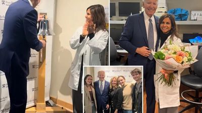 "Bjeri kambanës", shkroi Ashley Biden, vajza e ish-presidentit, në një postim në Instagram me një video të babait të saj duke rënë kambanës së argjendtë ndërsa stafi i spitalit e brohoriste.