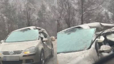 Në video shihet se vetura ka pësuar dëmtime të konsiderueshme, ndërsa gurët mbeten në rrugë, duke krijuar rrezik për automjetet e tjera që kalojnë në zonë.