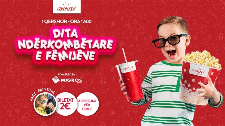 1 Qershori apo Dita Ndërkombëtare e Fëmijëve do të festohet edhe në Cineplexx në të dy kinematë, Prishtine dhe Prizren ku eventi fillon nga ora 11:30. Përveç çmimeve speciale, gjithashtu do të ketë aktivitete për fëmijë si face painting dhe dhurata mundësuar nga Migros Group.