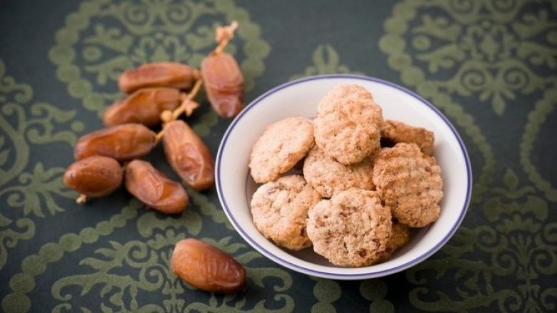 2. Përbërjes shtoni hurmat e grira dhe lajthitë e bluara, të gjitha ngjishni mirë dhe bëni biskota të vogla.