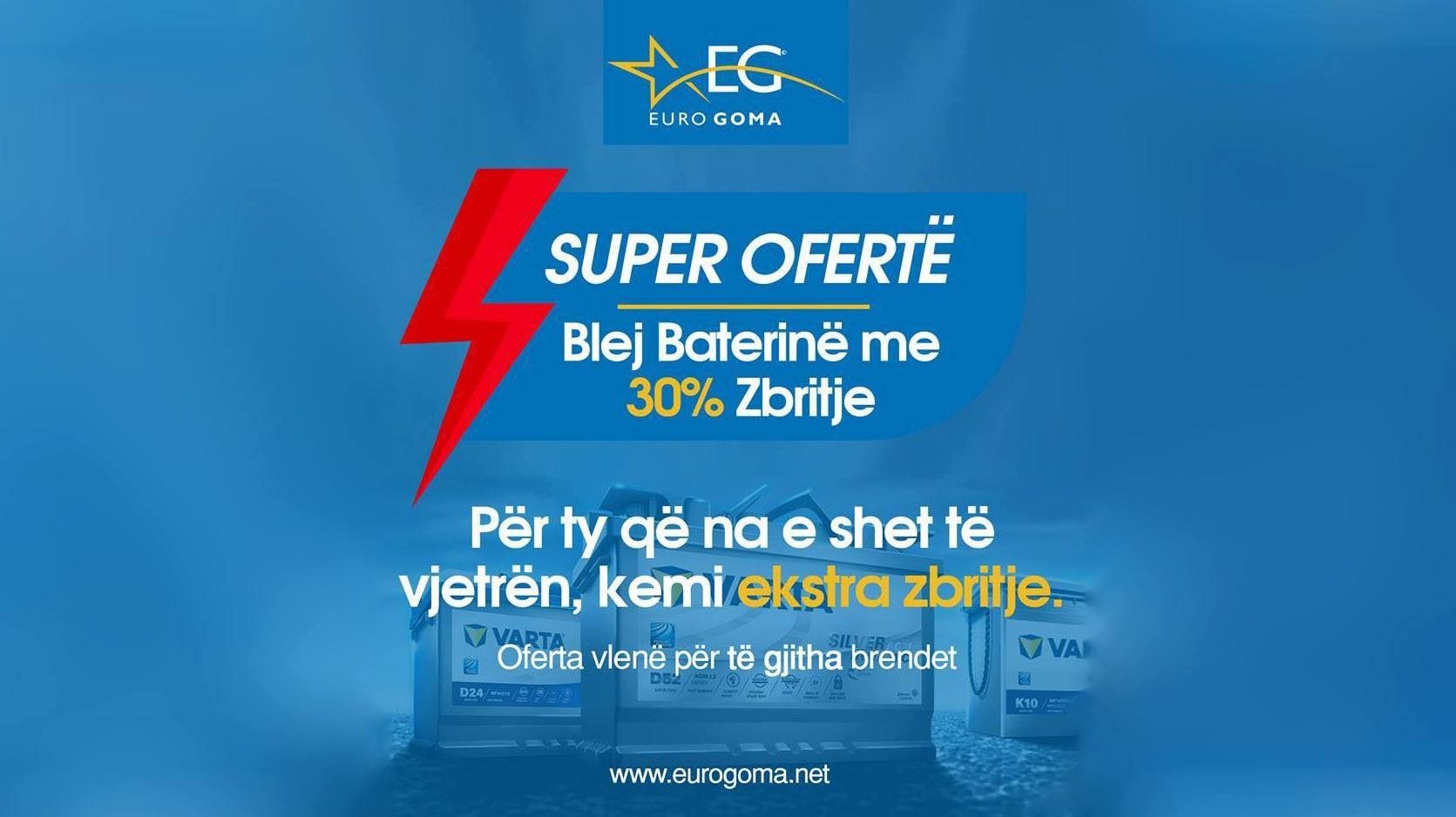 Në Eurogoma mund të gjeni bateri me standarde evropiane nga të gjitha brendet me 30% zbritje dhe dy vjet garancion, testimi i baterisë është FALAS.