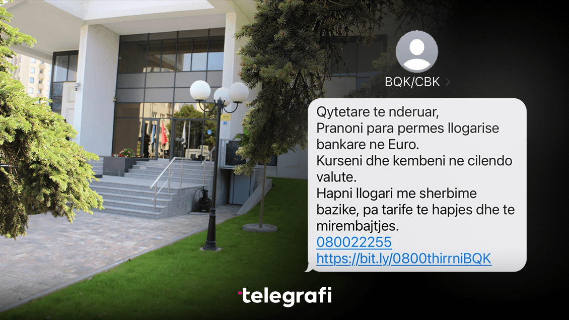 Përmbajtja e plotë e SMS-it të dërguar:Qytetarë të nderuar,Pranoni para përmes llogarisë bankare në Euro.Kurseni dhe këmbeni në cilëndo valutë.Hapni Llogari me Shërbime Bazike, pa tarifë të hapjes dhe të mirëmbajtjes.080022255