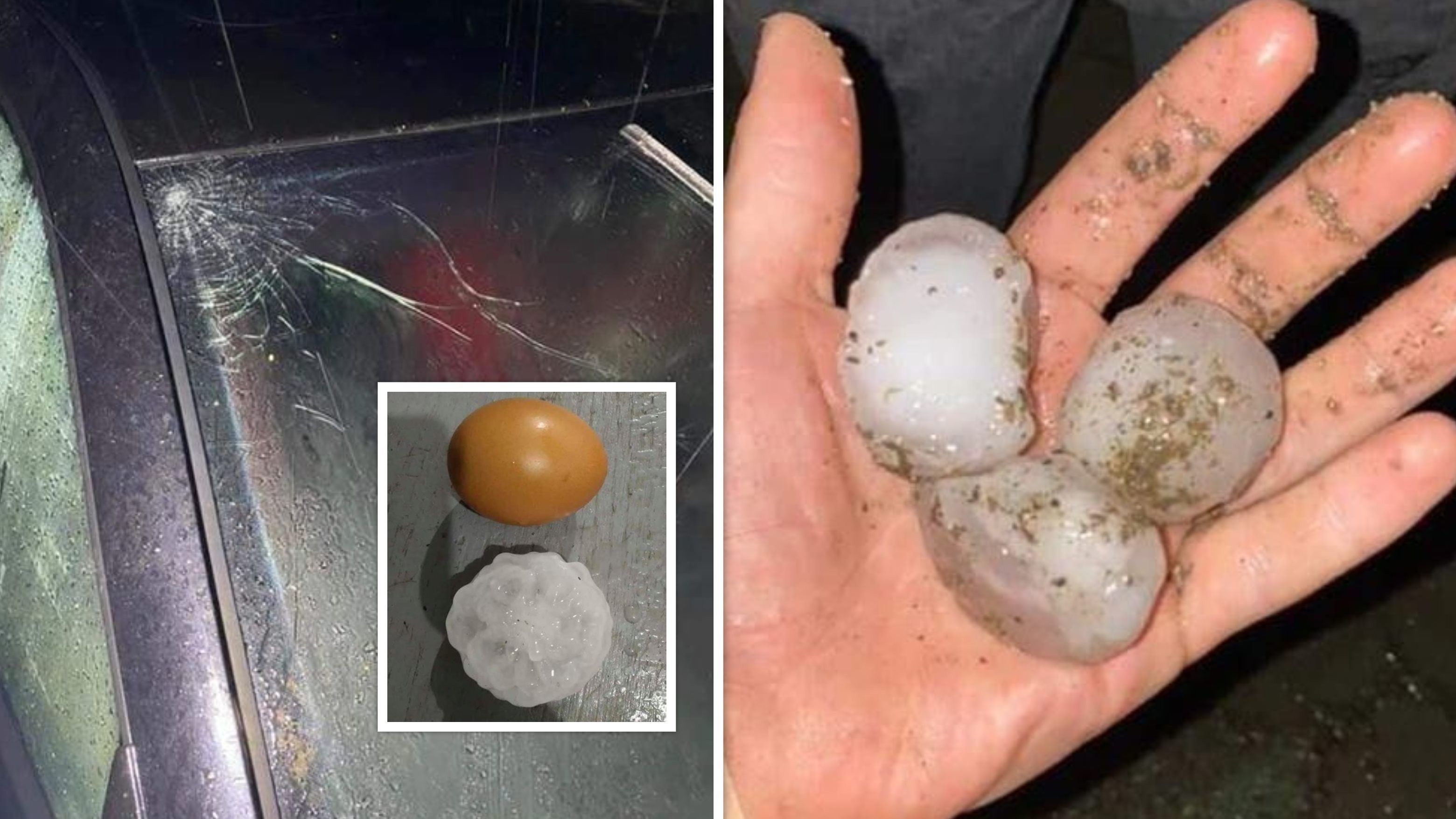 Fotografitë të cilat kanë ardhur në adresë të Telegrafit, qytetarët kanë krahasuar këtë breshër edhe me vezë ku shihet se kanë të njëjtën madhësi. /Telegrafi/