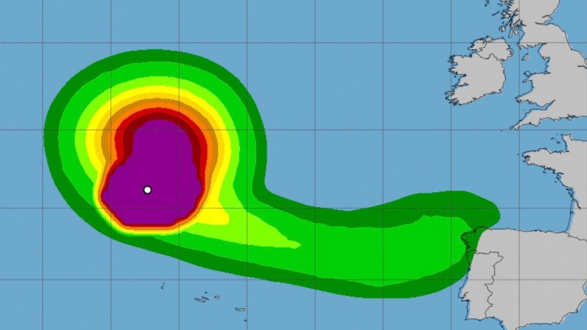 Rruga e stuhisë në fotografi shihet nga ora 14:00 e të mërkurës deri në mbrëmjen e të dielës, me Portugalinë e cila do ta marrë “majën” e stuhisë të dielën në mbrëmje.