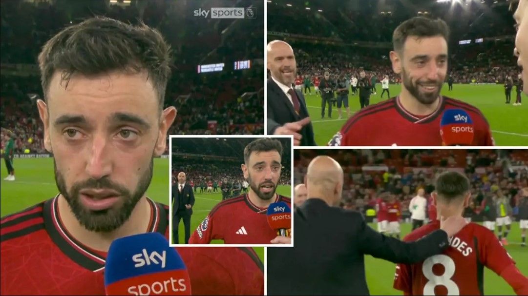 Intervista e Bruno Fernandes pas ndeshjes me Sky Sports pas fitores 3-2 të Manchester United ndaj Neëcastle u ndërpre nga Erik ten Hag teksa fliste për të ardhmen e tij.