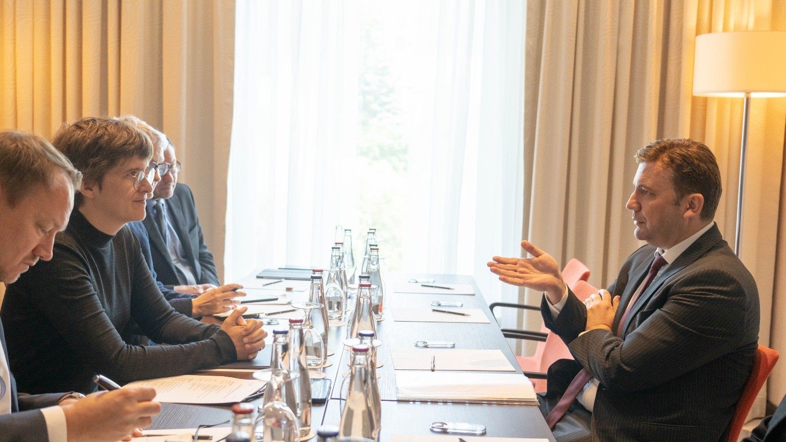 Në fokus të bisedimeve ishte dosja evropiane e RMV-së, ku Osmani informoi për procesin e ardhshëm të miratimit të ndryshimeve kushtetuese, me qëllim të hapjes së klasterit të parë të negociatave të anëtarësimit, dhe në këtë kontekst falënderoi për mbështetjen e fuqishme gjermane.