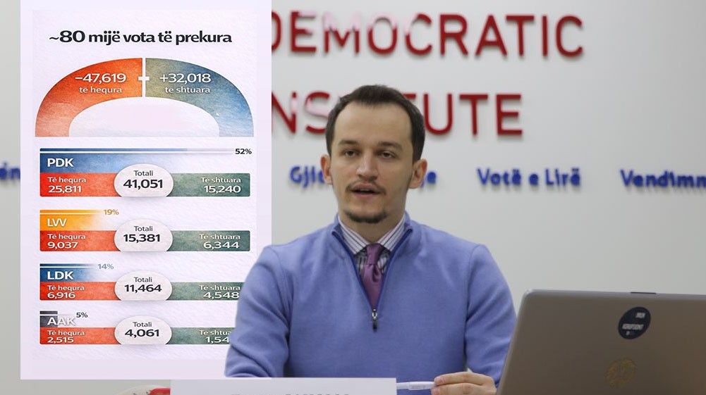 Instituti i Kosovës për Drejtësi ka bërë të ditur se nga rinumërimi i mbi 50% të vendvotimeve në Qendrat Komunale të Numërimit (QNR), rreth 80 mijë vota të kandidatëve për deputetë kanë rezultuar të pasakta dhe të numëruara gabimisht.