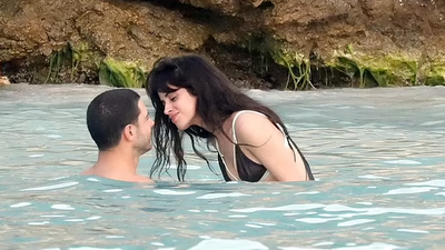 E veshur me bikini të vogla kafe dhe me flokët e saj në valë natyrale, Cabello rrezatonte bukuri dhe vetëbesim, ndërsa Chalhoub mbante një palë mbathje noti blu.