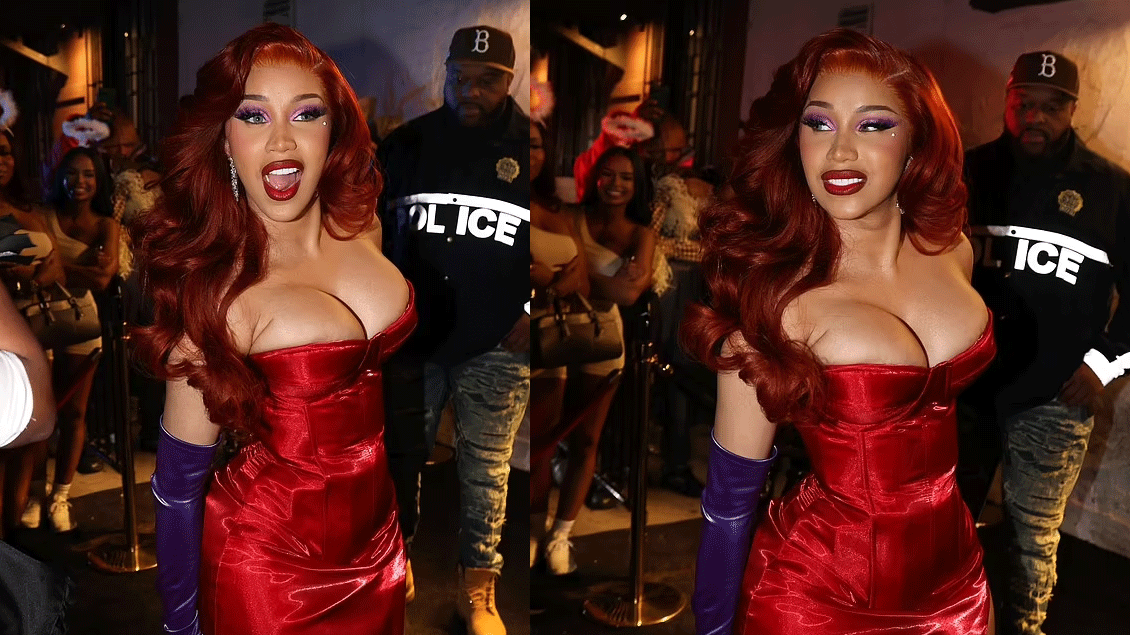 Cardi B mahniti në kostum të kuq për Halloween, duke u shfaqur si Jessica Rabbit
