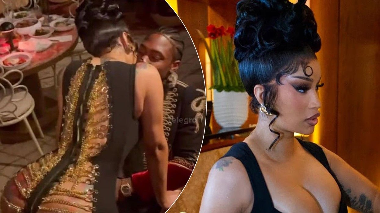 Cardi B tregoi të pasmet e saj të famshme me një fustan të zi me detaje zinxhiri të artë, ndërsa puthte të dashurin e saj, Stefon Diggs, gjatë festës së 32-vjetorit të tij në Miami.