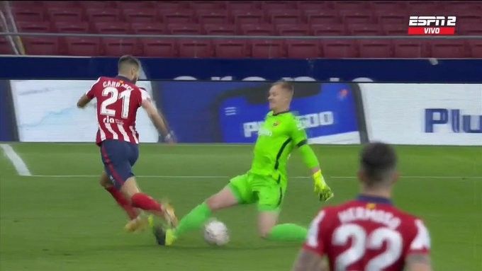 Carrasco kalon Atleticon në epërsi ndaj Barcelonës pas daljes skandaloze të Ter Stegen nga porta