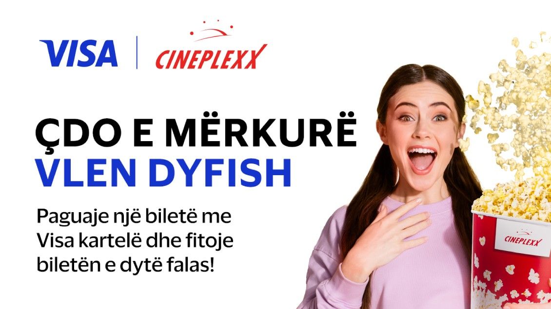 -Cineplexx së bashku me " VISA " kanë sjellur një super-ofertë, ku për çdo biletë të blerë me kartelë ' VISA ' , një biletë tjetër vjen falas ! .