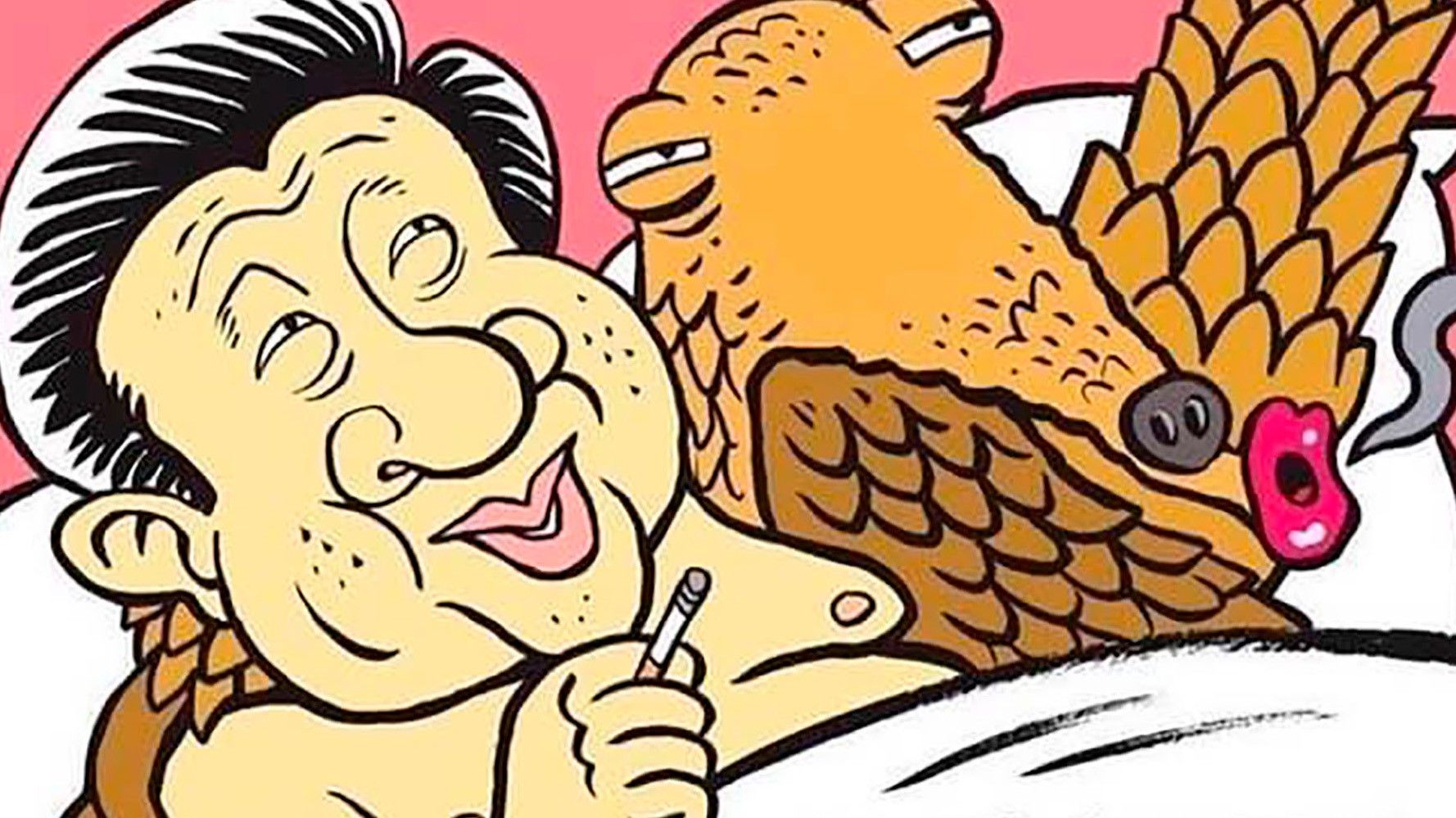 Në videon e prezantimit të kopertinës së kësaj jave, ajo shkon më tej. Ju mund të shihni se si pangolina del nga poshtë çarçafit, në aludim të qartë se ka praktikuar seks oral me Xi Jinping, i cili tregon një fytyrë të lumtur dhe të qetë gjatë pirjes së duhanit.