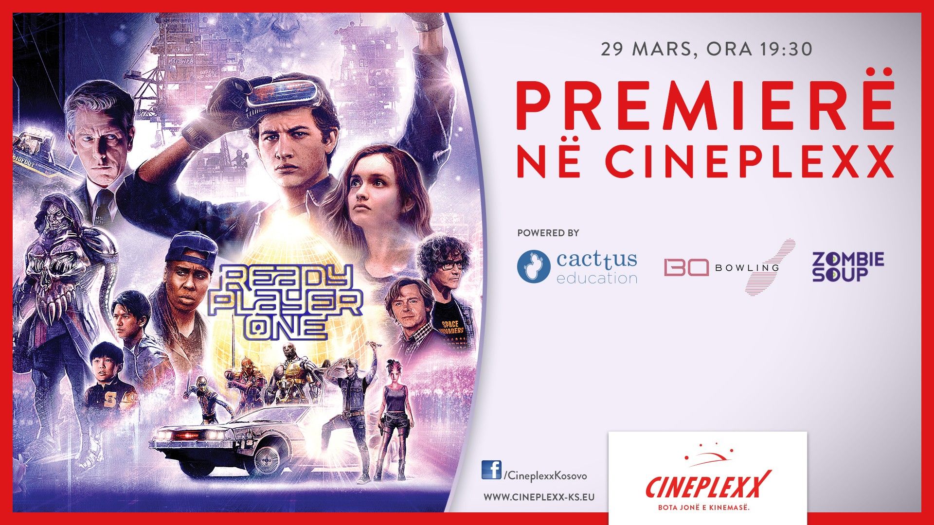 Cineplexx sërish organizon eventin Premiere Night, këtë herë me premierën e filmit “Ready Player One”, nga regjisori i mrekullueshëm Steven Spielberg! Edhe këtë herë, Cineplexx ka organizuar aktivitete të shumta për event, si dhe shpërblime fantastike!