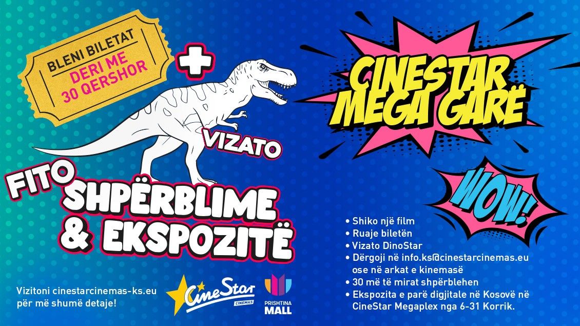 Qëllimi i garës është që të dhurojnë sa më shumë aktivitete dhe kënaqësi për fëmijët.Më poshtë i gjeni të gjitha detajet rreth rregullave të aplikimit:Të gjithë ata që dëshirojnë të marrin pjesë duhet të dërgojnë një vizatim të DinoStar ose Cinebot dhe biletën e blerë të filmit të bashkangjitur. Disa nga filmat që ju mund ti shikoni janë: Butterfly Tale, Inside Out 2, Kingdom of the Planet of The Apes, Ezra, The Fall Guy, Imaginary Friends, Hit Man, Godzilla X Kong: The New Empire, e shumë të tjerë.Vizatimet mund ti dërgoni me postë ose personalisht ose me postë elektronike, në info.ks@cinestarcinemas.eu me titull "GARA E DITËLINDJES CINESTAR".Konkursi zgjat deri në fund të muajit Qershor (30 Qershor) (biletat duhet të blihen në këtë periudhë kohore).Pas datës 30 Qershor CineStar zgjedh 30 vizatimet më të mira me juri internacionale.Nga data 6-31 Korrik do të mbahet ekspozita e parë digjitale në CineStar Megaplex nga ora 15-17h.