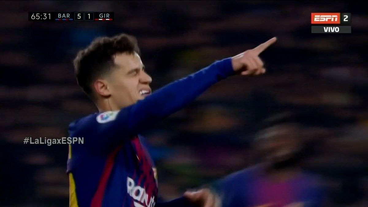 Coutinho shënon gol të bukur nga distanca ndaj Gironas (Video)