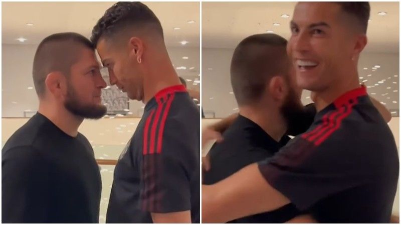 Ronaldo dhe Khabib u takuan pas ndeshjes, duke dal ballë për ballë me njëri tjetrin ashtu siç bëjnë boksierët dhe luftëtarët e MMA, para meçeve.