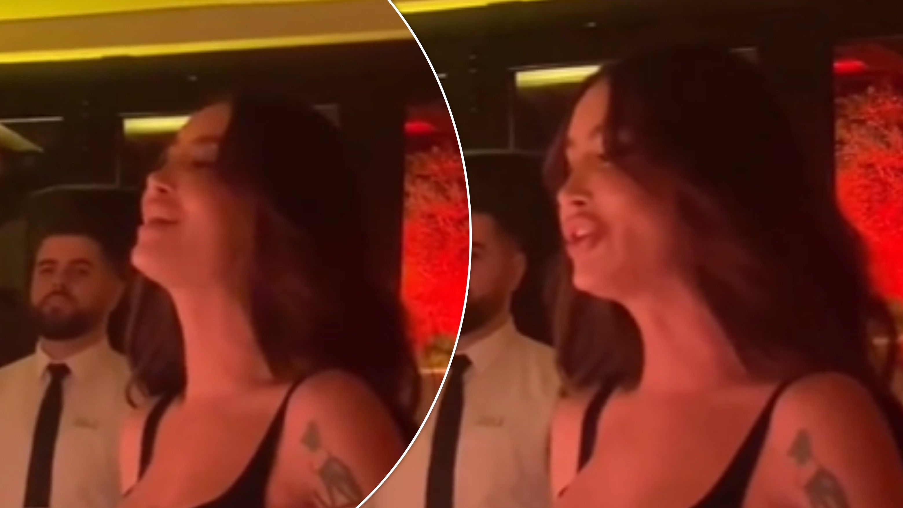 Në pamjet e publikuara nga darka në një moment Dafina para të ftuarve shihet teksa interpreton ‘live’ një prej hiteve të saj “Gurbeti”.