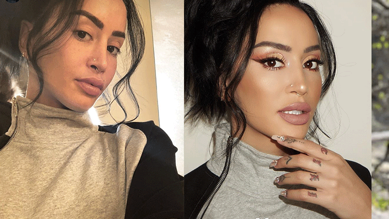 Ajo ka bërë një krahasim se si duket para se përdor makijazh, dhe më pas se si ndryshon.