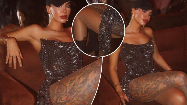 Ajo mund të shohej në një dukje mjaft atraktive e veshur me një fustan të shkurtër me xixa, teksa nxirte në pah këmbët e saj të tonifikuara dhe të mbuluara me tatuazhe.