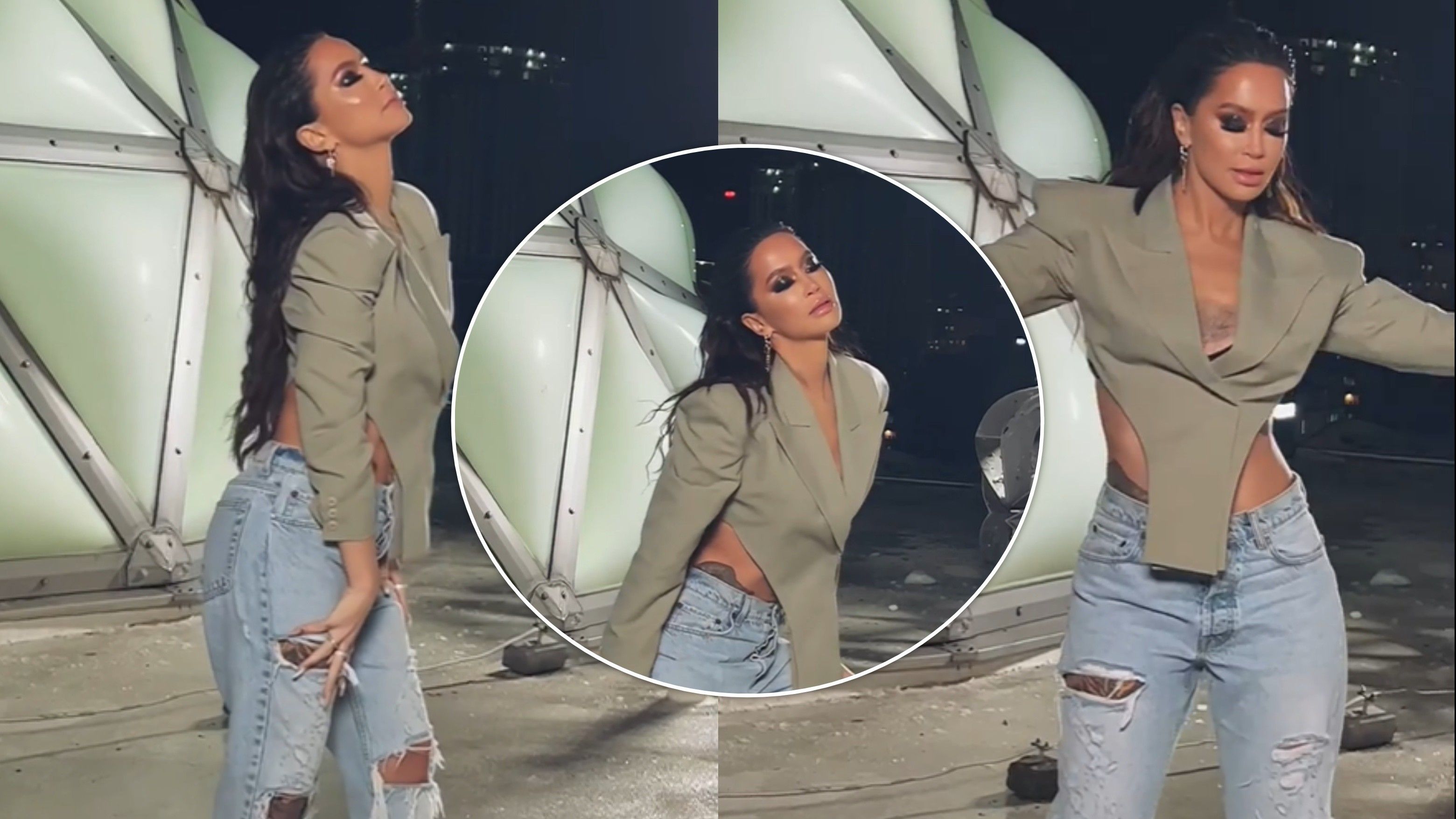 Dafina ndërkohë shfaqet sensuale me një korse ngjyrë ulliri e po ashtu me një palë xhinse të grisura.
