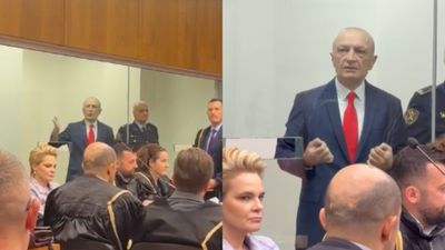 Kreu i partisë së Lirisë, Ilir Meta shihet brenda kafazit prej xhami teksa lëshuar akuza ndaj sistemit të drejtësisë se procesi ndja tij është i turpshëm.