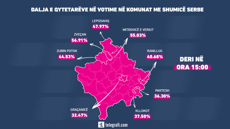 Më poshtë keni renditjen e komunave me shumicë serbe me daljen më të madhe të qytetarëve në votime: