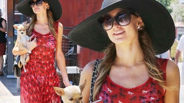 Fustani me lara maksi Paris Hiltonit bukur i është përshtatur me këpucë të zeza me taka, ndërkaq kapela dhe syzet bëjnë që kombinimi të duket i këndshëm.