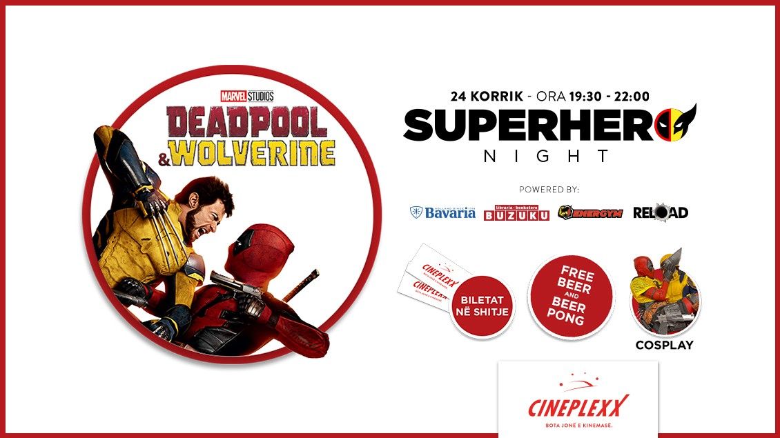 PrishtinëKëtë të mërkurë më 24 Korrik duke filluar nga ora 19:30, jeni të gjithë të ftuar në eventin SuperHeroNight - "Deadpool & Wolverine", ku do të ketë shumë aktivitete si:- Birra falas nga bavariakosova -Beerpong,-CosPlay Deadpool & WolverineGjithashtu do të ketë edhe shumë shpërblime si:- 3x- Abonime vjetore në vlerë 280€ nga Energym- 3x- Antarësime 1 vjeçare me 50 fishekë - nga reloadshootingrange- 5x- Comic Books nga Libraria Buzuku