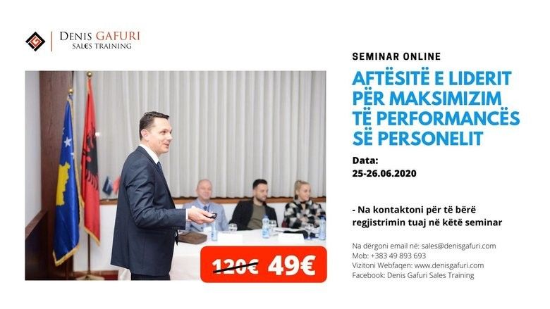 DENIS GAFURI SALES TRAINING organizon këtë webinar / trajnim online me datën 25 dhe 26 qershor nga ora 18:00 deri në ora 20:00.