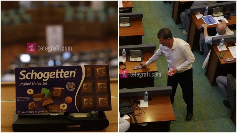Deputeti është kujdesur që pak para përfundimit të seancës t’u shpërndajë çokollata kolegëve deputet.